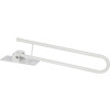 The grab bar is held in the upright position by a spring loaded cam, and is easily folded down. These safety handrails also comes with the option of a support leg to give strength and stability during lowering and raising, lessening the strain on the wall.