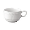 Buckingham white stackable coffee cups have a distinctive rope embossed Gadroon edge and subtle fluting, perfect for any catering establishment looking for a more traditional style of tableware. Its super vitrified body has a high resistance to thermal shock which helps reduce breakages.