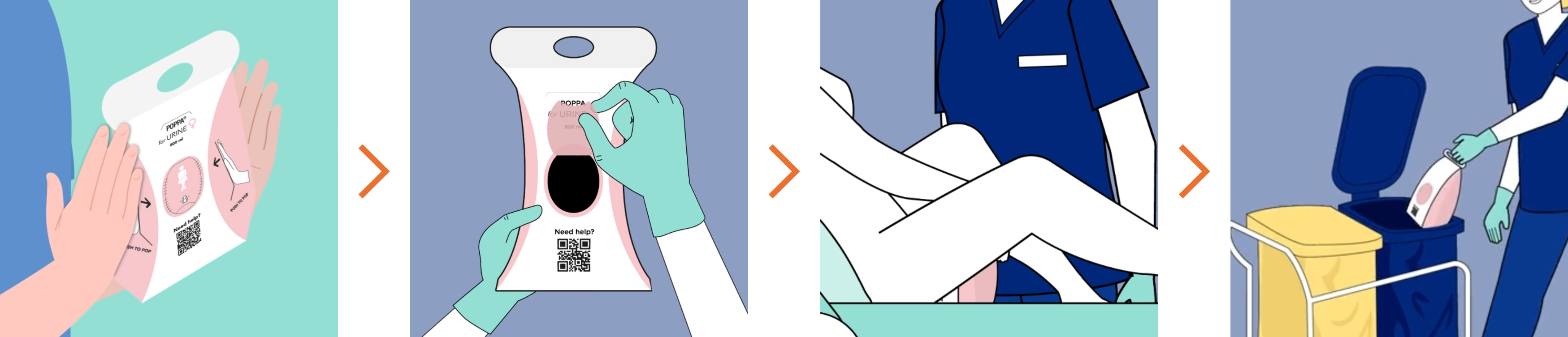 Until now, going through the process of assisting female patients to urinate in bed has been physically demanding and time-consuming. Poppa technology makes this easier, cleaner, faster and more dignified.